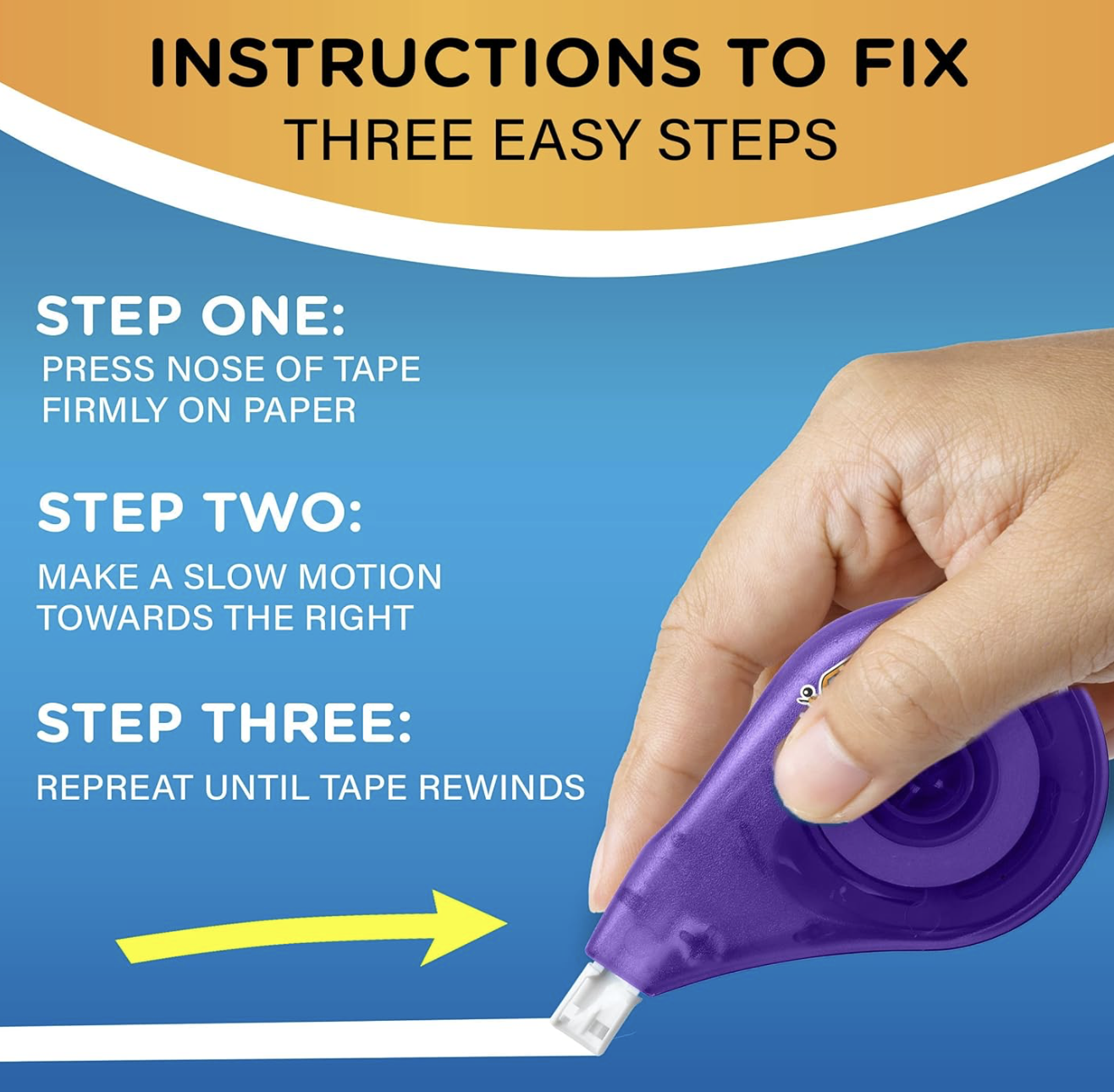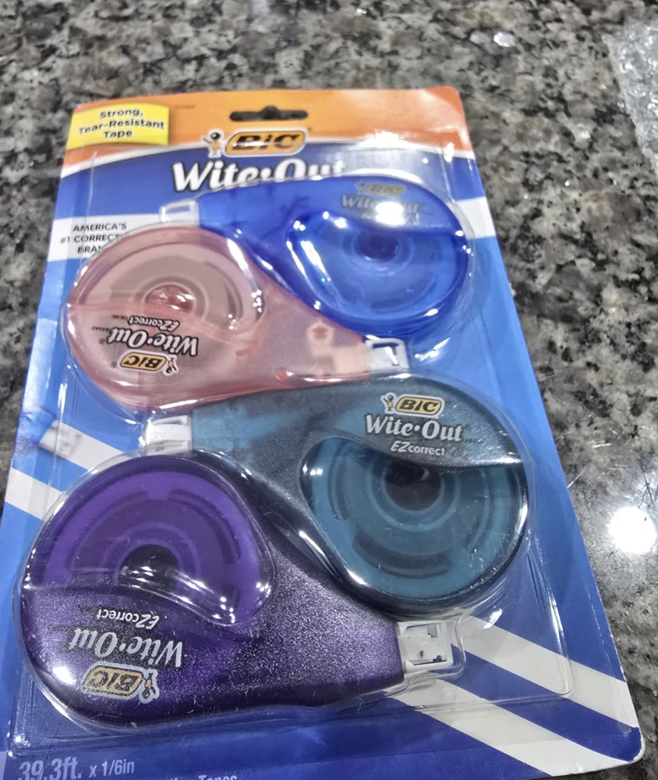 The BIC Wite-Out EZ Correct 4-count pack delivers 19.8 ft of tear-resistant white correction tape per dispenser. Fast, clean application covers mistakes evenly without cracking. Easy-to-use wheel mechanism ensures smooth dispensing. Perfect for office forms, school papers, or home editing – no mess, quick drying, and professional results. Great value multi-pack for frequent users needing reliable, mess-free corrections.